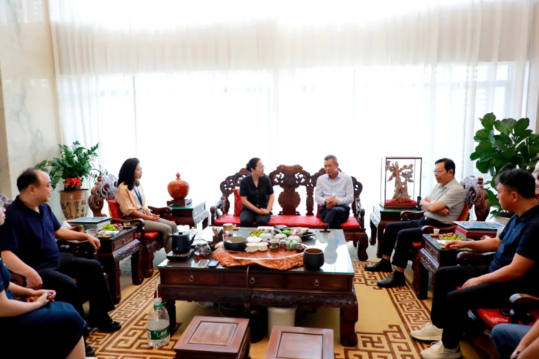 9 月 9 日上午,由全国工商联直属商会综合党委副书记、全国工商联商会发展服务中心副主任张一卫率领的全国工商联一行领导,在厦门市工商联副主席林志宏等厦门市工商联领导的陪同下,莅临泉舜集团开展考察调研活动,并与集团吴泉水董事长、吴丽娜副总裁和吴灿鑫总裁助理等集团高管进行了亲切且深入的座谈交流。抵达泉舜集团后,张一卫一行率先参观了集团文化墙。在参观过程中,张书记悉心了解泉舜集团一路走来的发展脉络,细致探究其当下的产业发展现状,尤其对泉舜党建工作所呈现出的特色,进行了重点关注与深入了解。随后开启的座谈氛围热烈且融洽。泉舜集团董事长吴泉水热情洋溢地对张一卫书记一行不辞辛劳地莅临调研表示诚挚的欢迎与由衷的感谢。吴泉水董事长感慨回顾了泉舜集团四十余载的漫漫创业路,其间虽历经诸多艰难险阻、饱尝风霜雨雪,但得益于中国改革开放的浩荡春风,企业得以打下坚实基础,创立下这一番不凡基业。吴董事长深情地表示,在这一过程中,集团始终对党和国家怀着深深的感恩之情,在企业经营与发展的每一个阶段,都紧紧跟随着党和国家的政策导向与前进步伐,与时俱进地不断调整企业自身的战略方向,矢志不渝地坚守着对党的忠诚与拥护,始终怀揣着对党和国家光明未来的坚定信念,期盼着能为社会主义现代化建设贡献更多、更大的力量。吴董事长还着重提到了集团在社会公益方面所付出的努力,他表示,“取之社会,回馈社会是泉舜集团一直秉持的理念。” 多年来,泉舜集团积极投身于各类公益事业,无论是扶残助残还是扶贫攻坚,始终以实际行动践行着社会责任,努力让公益之花在社会的各个角落绽放,期望用自己的力量让这个世界变得更加美好,让更多的人感受到来自企业的温暖与担当。张一卫书记在发言中,对泉舜集团的企业与党建文化表示赞赏。她指出,泉舜集团历经四十余年的发展历程,已然成为中国改革开放进程中的积极践行者与忠实见证者。在时代的浪潮中,泉舜集团始终秉持着与时俱进的发展理念,积极谋求转型升级,充分彰显出敢拼会赢、勇于开拓进取的优秀企业家精神,着实令人钦佩不已。尤为值得一提的是,吴泉水董事长在用心经营企业、推动企业蓬勃发展之余,时刻不忘肩负起应尽的社会责任,将 “做让人尊重的企业和做让人尊重的企业家” 当作自己不懈追求的崇高抱负,持之以恒地通过一桩桩、一件件实实在在的公益行动,践行着那份沉甸甸的公益担当,展现出了一抹熠熠生辉的亮色,为众多同行树立了标杆典范。基于此,张书记诚挚地向吴泉水董事长发出邀请,希望吴董在日后能够为青年企业家们授课讲学,将这份难能可贵的优良企业家精神传承下去,助力更多青年企业家茁壮成长,为民营经济的持续繁荣贡献智慧与力量。