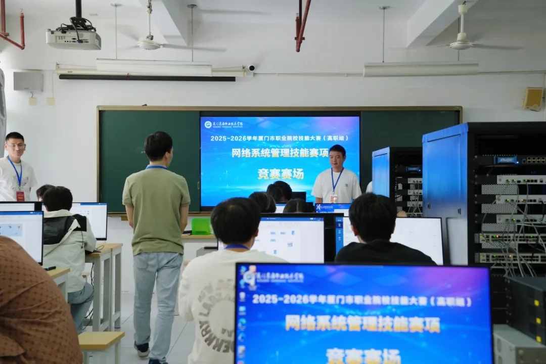 10月25日,由厦门东海职业技术学院承办、厦门鑫微思科技有限公司协办的2025-2026学年厦门市职业院校技能大赛(高职组)“网络系统管理”赛项在厦门东海职业技术学院举行。来自全市7所高职院校的17支参赛队伍齐聚赛场,以精湛技术角逐巅峰,用实操能力诠释新时代高职学子的专业素养与奋斗姿态。网络系统管理赛项基于企业真实项目和工作任务,结合工作岗位对学生职业技能的最新需求,要求选手在累计150分钟内,完成项目需求分析与网络设计规划,并进行网络构建和服务部署,重点考察选手在信息化网络领域的职业素养、专业技能、创新意识等能力。经过从清晨到日暮的激烈角逐,“网络系统管理”赛项圆满落幕。选手们在赛场上挥洒汗水,专注拼搏,以精湛技术和创新精神直面挑战,尽显新时代高职学子的专业底蕴与昂扬斗志。厦门东海职业技术学院作为本次大赛的承办方,全力以赴做好各项准备工作,积极为各校学子搭建了一个切磋技艺、交流进步的广阔平台。学校领导对赛事的高度重视,各行政部门的周密筹备,工作人员与志愿者的热情服务,以及参赛师生的不懈努力,共同为大赛的顺利举办奠定了坚实的基础。相关领导在现场巡视后,高度评价我校赛事组织工作的规范有序、高效有力,尤其对我校在人文关怀方面的扎实举措和暖心服务予以充分肯定。在这场竞技中,同学们不仅锻炼了工匠精神,更点燃了对专业的无限热情,真正践行了“以赛促学、以学促练、以练促进”的目标。虽然赛事已经结束,但追求技能卓越与成长的心永不停歇!
