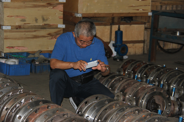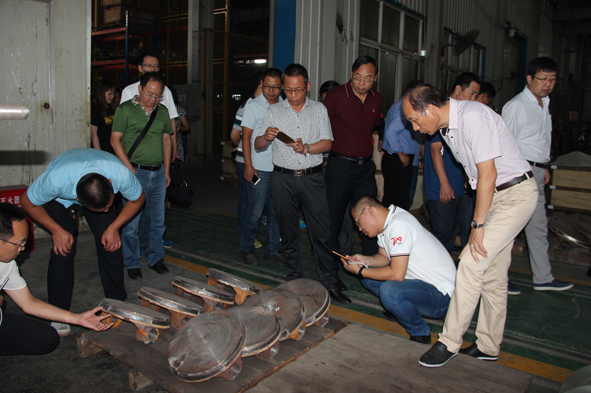 与会专家表现出了浓厚的兴趣,聚精会神的听着讲解,详细观看现场的旋球阀和半球阀,讨论其加工工艺,并不时拿出手机拍照留念。