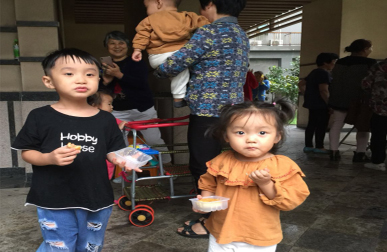 小朋友们也纷纷加入我们的美食品尝行列,纷纷缠着爸爸妈妈,争着、跳着要吃月饼。