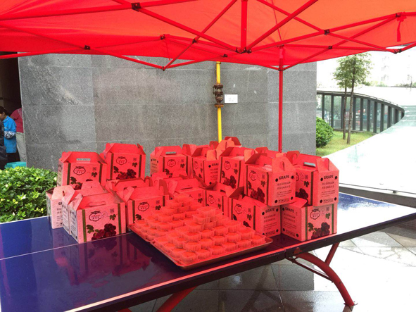 下午15:00时,各个活动会场已布置就绪,精美的礼品、月饼摆放整齐,静待业主的来临。