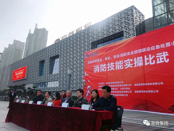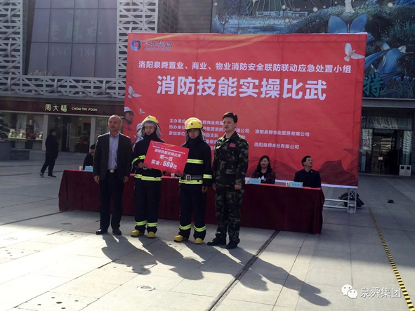 为贯彻《中华人民共和国消防法》规定,落实社会单位消防安全责任制,强化微型消防站队员专业技能,提升员工对突发事件的处理能力,保障广大顾客和业主的人身财产安全。10月23日,由洛阳商业发起组织进行本年度“泉舜商业、物业消防安全联防联动应急处置小组技能比武”,洛阳市消防支队防火处潘科长,翠云路街道办事处于主任,洛阳置业常务副总经理林元涛,洛阳商业副总经理周毓瑞、工程物管副总监袁胜明,洛阳物业总经理刘喜梅出席了此次活动。