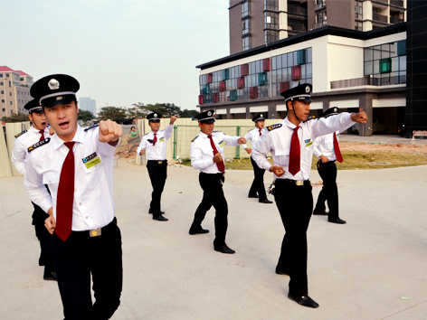 消防灭火演示结束后,泉舜物业维序部向领导和业主展示了列队风采与擒拿拳表演,同时辅导员工与部分围观业主进行灭火器实际操作尝试。