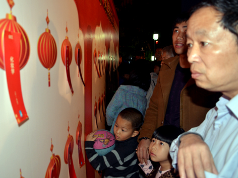 来到滨海上城小区内,中庭里人头攒动,一派热闹景象。元宵猜灯谜向来是我国的优良传统,众多业主们蜂拥在灯谜张贴处,就连孩子们都跃跃欲试,力图在这次猜灯谜的活动中博个彩头。而有的小孩子的则围拢在刻有“泉舜•滨海上城”几个大字的中庭大石前,对着色彩多变的灯光追逐搞怪,连旁边的家长们都为他们的天真可爱所感染,纷纷会心微笑。除此之外,人群中还有卡通版和古装版财神穿梭其中,引得业主们纷纷与之合影,好一沾财气。整个现场忙而不乱,细心者会发现,泉舜物业的保安们分布在现场的各个角落,保证了安全和秩序,使得很多业主感慨:“自己的物业就是好”。