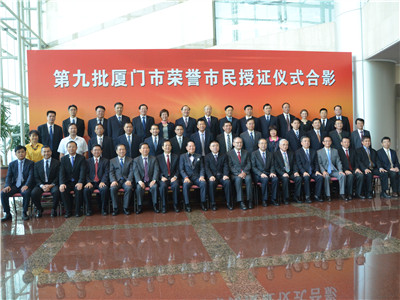 2014年厦门市第九批荣誉市民授证仪式于10月23日上午在人民会堂四楼国际厅举行。集团董事长吴泉水被授予“厦门市荣誉市民”的称号,市委副书记、市长刘可清亲自颁发证书并合影。据了解,厦门市自1996年启动荣誉市民评选和授予活动以来,累计有九批221位港澳台同胞、华侨华人和外国友人获此殊荣,本次共有15人获得该项殊荣。