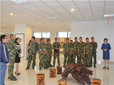 喊着嘹亮的口号,踏着整齐的步伐,11月13日上午10点,厦门市公安边防支队机动大队二中队在吴志伟队长的带领下,精神抖擞得向集团大门列队走来。行政中心总经理陈贞臻与行政管理部副经理晏晶热情欢迎这支公安边防支队的到来,并引导进入集团一楼泉舜艺术中心进行参观。