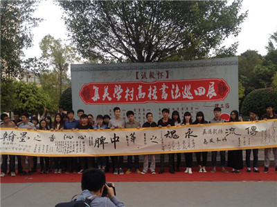 11月26日下午,东海学院院墨斋书法协会联合青年志愿者协会、街舞社应邀,派出6名学生参加厦门理工学院举办的“诚毅杯集美学村七大高校书法巡回展——理工站”书法交流会。