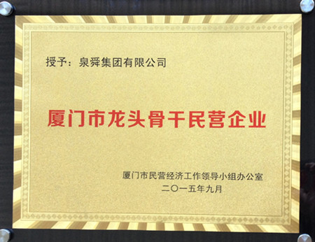 泉舜集团符合厦门市产业发展导向、拥有自主知识产权和核心技术、具有较高品牌知名度和市场占有率、是具备现代企业制度的优秀民营企业,获此殊荣,可谓实至名归。