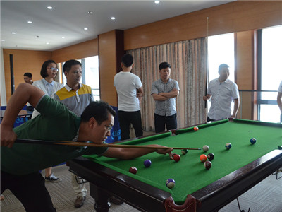 首先进行的是台球项目,由于选手对彼此的水平有了一定的了解,所以在抽签分组环节,大家都十分紧张和期待;安排好比赛顺序,比赛正式开始。