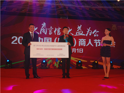 慈善和公益是商人节一个温暖的符号。在2015中国(厦门)商人节慈善晚会上,厦门市光彩事业促进会向鸿基金捐赠50.1831万元,用于关爱留守儿童。