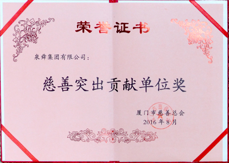 近日,厦门市慈善总会第四届理事会第一次会员大会在厦门火炬高技术产业开发区举行。会上,泉舜集团被授予“慈善突出贡献单位奖”, 董事长吴泉水被授予厦门市慈善总会永久荣誉会长,并被评选为“慈善之星”。
