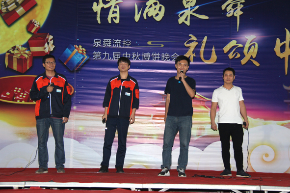 泉舜流控人才辈出,多才多艺,自编自导的节目丰富多彩,有流行歌曲、小品、经典戏曲等。无论是奋战在一线的销售精英及车间技术工人,还是办公室的二线服务人员,都献上了自己的拿手节目。中秋月圆之夜,《但愿人长久》歌声响起,表达出了泉舜人此刻对朋友们的美好祝福;一曲《外婆的澎湖湾》,把车间技术师傅的柔情体现地淋漓尽致;经典戏曲《四千岁你莫要羞愧》,体现了传统文化在泉舜大家庭的发扬光大;中秋特别节目小品《月饼》,给晚会增加了阵阵的笑声;中间的“发红包”环节,点燃了现场的温度,泉舜人沉寂在幸福的海洋中……