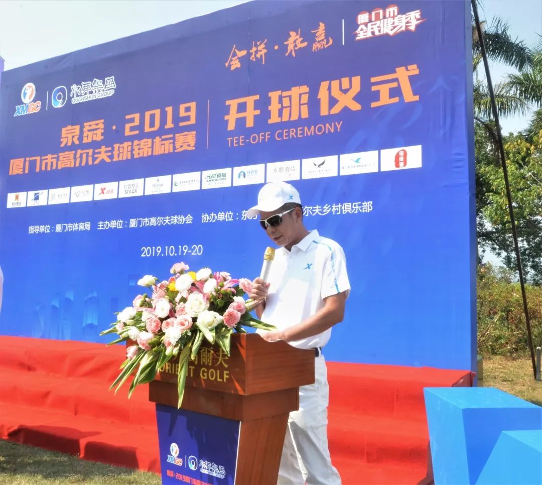 10月19日中午,“泉舜·2019厦门市高尔夫球锦标赛”开球仪式在东方高尔夫球场举行,厦门市高尔夫球协会(以下简称协会)主席、厦门万里石股份有限公司董事长胡精沛,协会副主席、泉舜集团董事长吴泉水,协会副主席、恒兴置业有限公司董事长柯希杰等领导嘉宾出席活动现场。