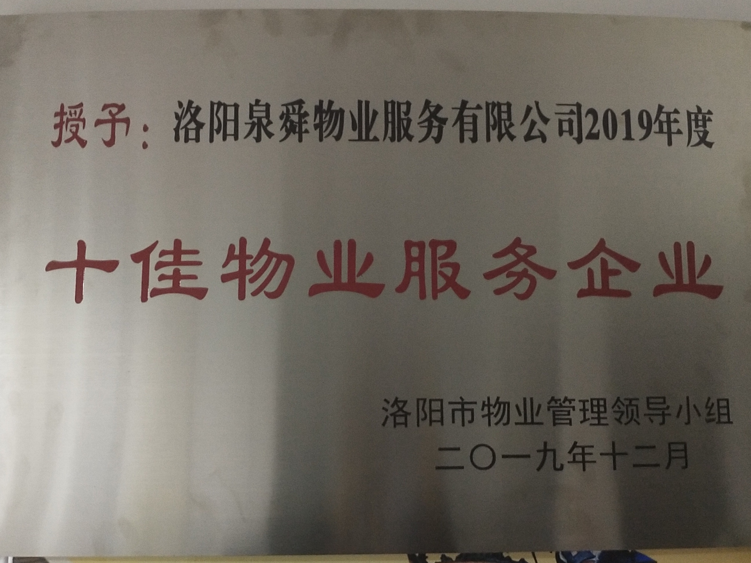 “优美小区”是居民生活和文化追求的反映,也是城市面貌的体现,更是社会文明进步的标志。12月31日,在洛阳市2019年度“十佳物业服务企业”及“优美小区”评选活动中,洛阳泉舜物业服务有限公司及其在管小区“泉舜·锦泉苑”荣获第五名!