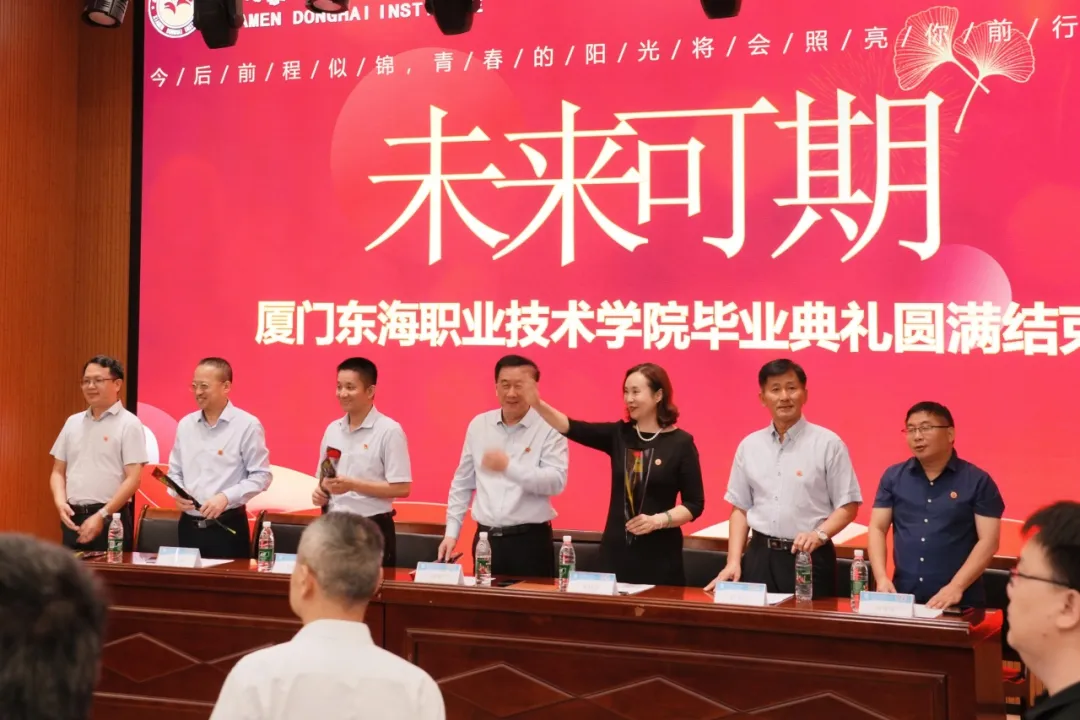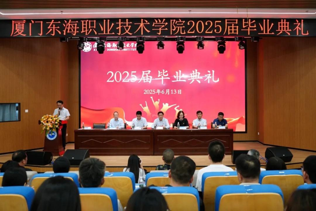 2025年6月13日下午,厦门东海职业技术学院2025届毕业生毕业典礼在学校5号楼报告厅举行。学校党政班子、全体中层干部、全体毕业班辅导员、各专业教师代表以及部分2025届毕业生齐聚一堂,共同见证这一庄重而神圣的时刻。毕业典礼由林金龙副校长主持。