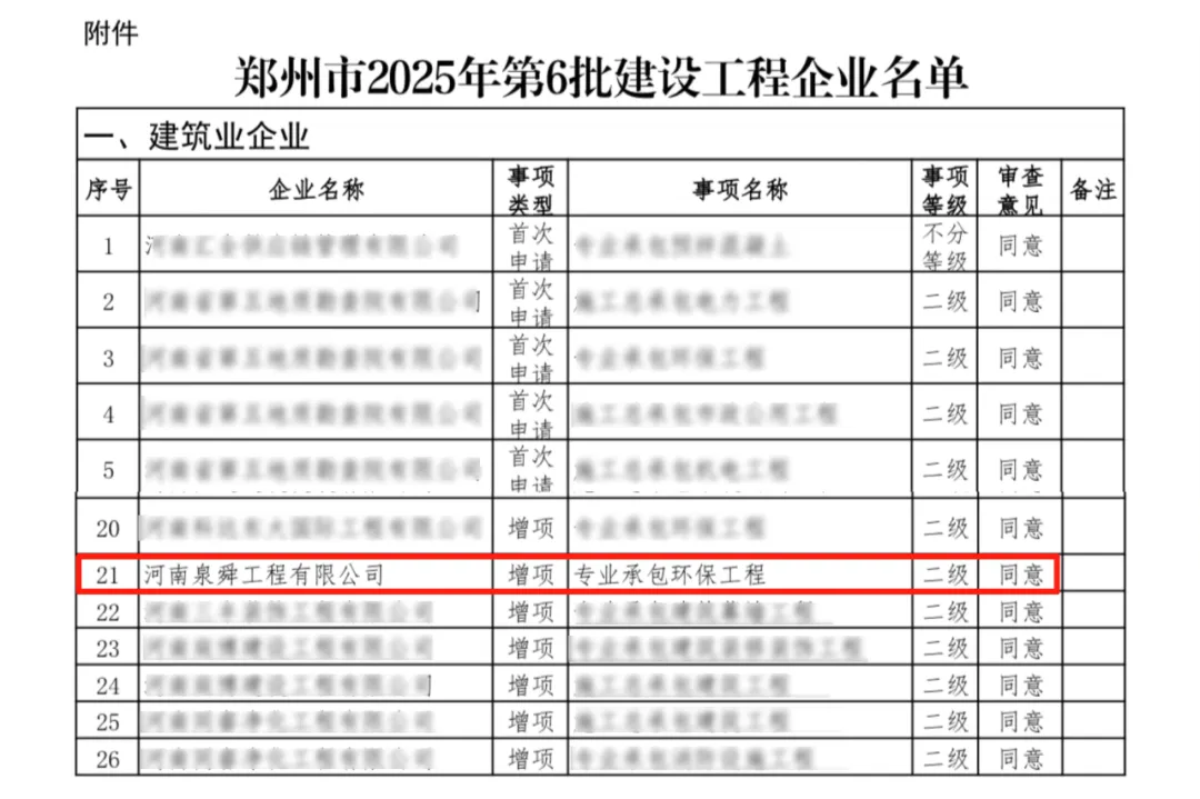 近日,泉舜工程在资质建设方面再次传来捷报,继获得“电力工程施工总承包贰级资质”后,又成功取得“环保工程专业承包贰级资质”。