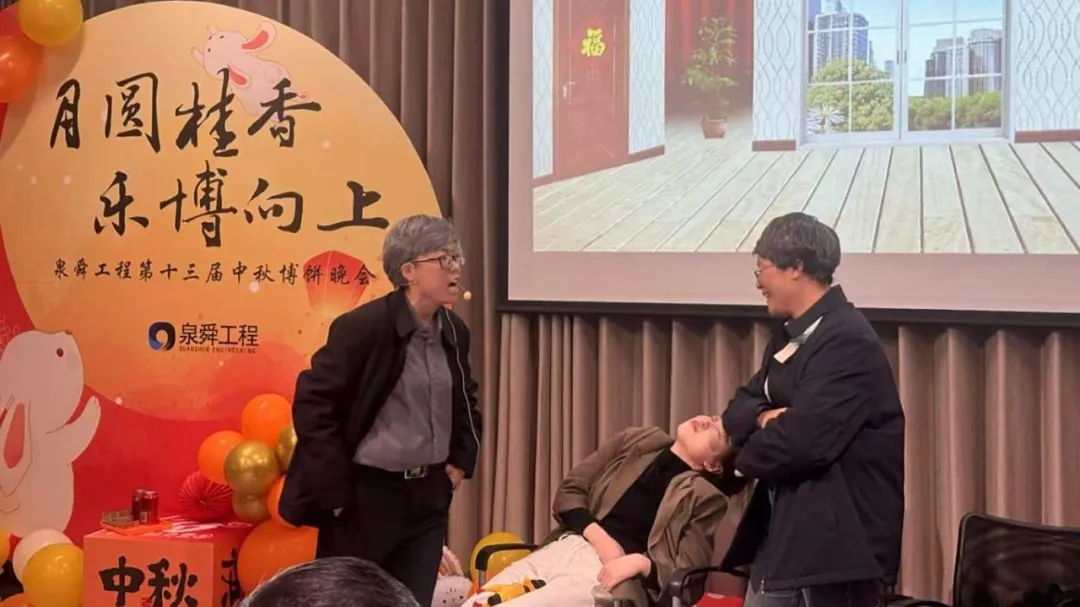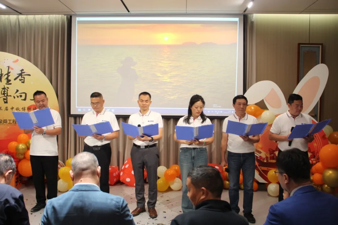 最后,泉舜高管压轴登场,以铿锵有力的朗诵《中秋博饼》诠释博饼和企业文化,为表演环节画上圆满句号。