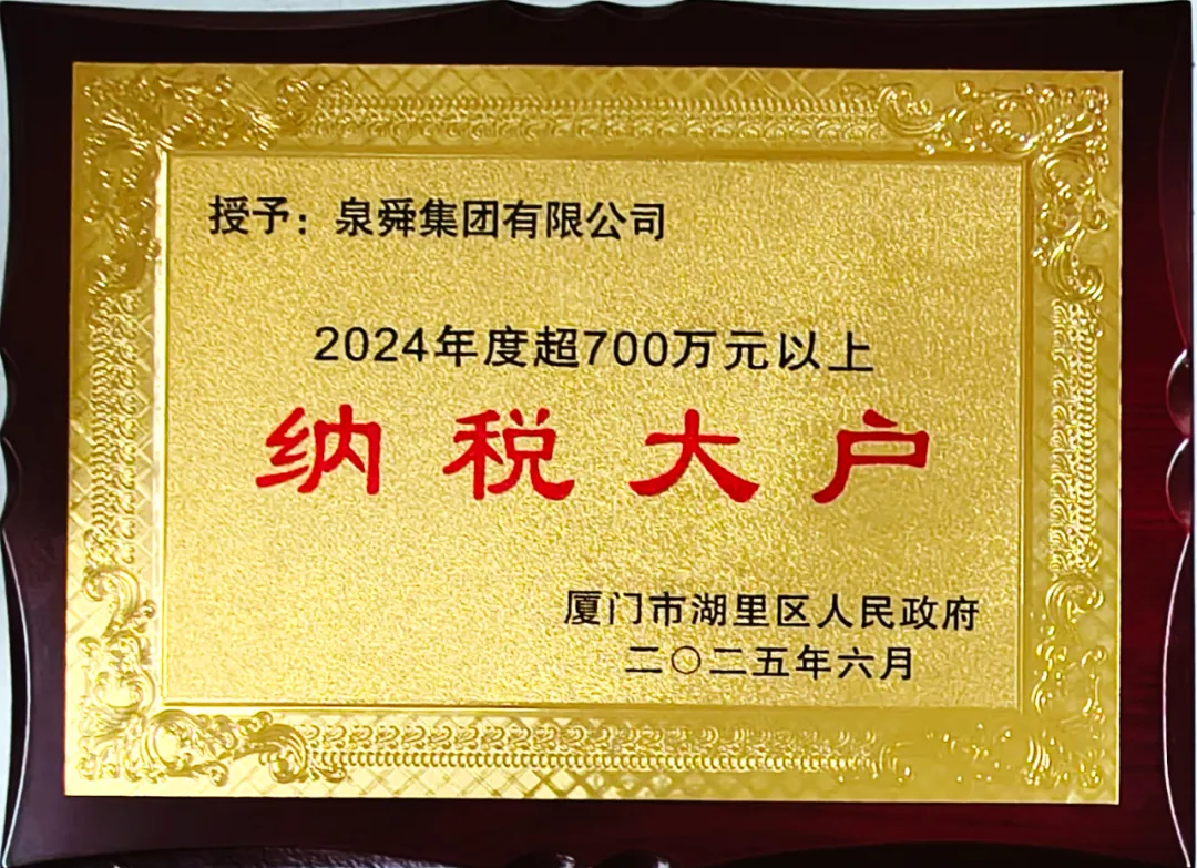 近日,泉舜集团再度荣获“湖里区纳税大户”荣誉称号!这不仅是对集团过去一年稳健经营与卓越贡献的充分肯定,更是对其长期以来依法诚信纳税、积极回馈社会的高度认可。
